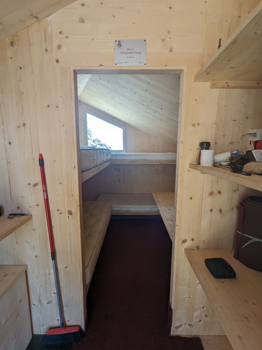 All’interno, quattro posti letto piuttosto risicati – abbiamo qualcosa da ridire sull’organizzazione degli spazi – con materassi ma non coperte, e due copie di una raccolta di saggi di Alessandro Pansa, Il manager intellettuale.
