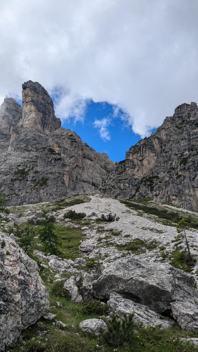 Di fronte al rifugio, seguiamo le indicazioni per il sentiero 362 in direzione del Pas del Mus; saliamo con abbastanza decisione. Ignoriamo due bivi: un primo (1640 mslm) per Forcella Fantulina Alta, un secondo per il Pas del Mus (1780 mslm) – qui proseguiamo sul sentiero 363 per il Passo di Suola; tutto il tempo, dietro di noi, il rifugio si fa sempre più piccolo, e si immerge nel verde intenso dei mughi.