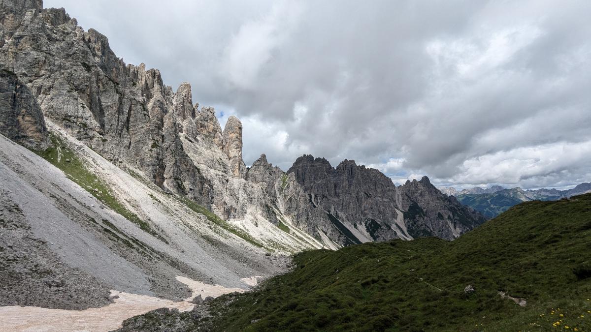 In ogni caso, usciamo ad un certo punto dal bosco e sì: la Val Suola è davvero bella. Soprattutto sulla nostra destra, con le prime cime aguzze a prendere forma, e di fronte a noi, dove la testata pare insormontabile.