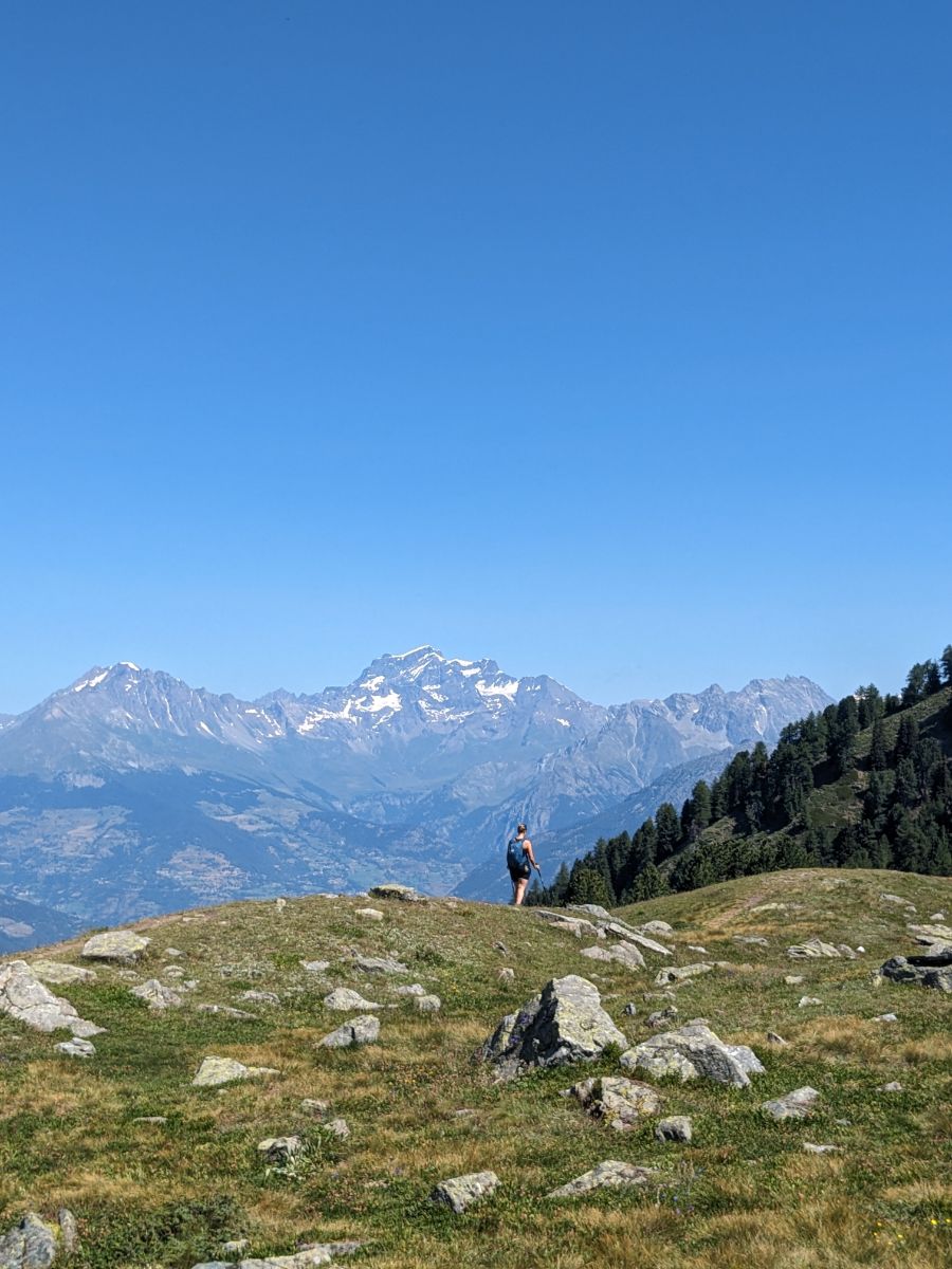 La vista però ripaga, perché se verso sud c’è la conca erbosa dove si trovano il Lago Arbolle e il rifugio omonimo, è guardando l’orizzonte che le cose si fanno affascinanti: c’è la Becca di Nona, imponente vista da qui, l’Emilius che spunta giusto dietro, un mare di pietre in quota, il Vallon d’Arbolle che si infila verso chissà quale avventure alpinistiche…