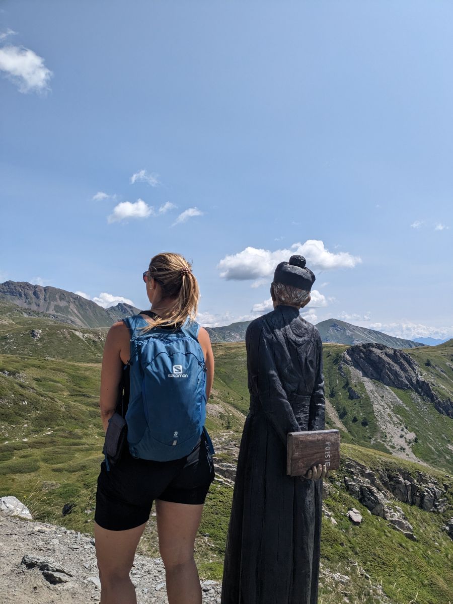 L’unico punto negativo del museo a cielo aperto? Dopo un po’, non riuscirai più a capire cosa è una scultura e chi è invece un essere umano o un animale in carne ed ossa. Ok, il San Bernardo ci ha ingannati subito, ma quel gatto? Sì muove, già. E l’uomo con il binocolo puntato sul Monte Vertosan? Una statua sicuramente, non vedi come è immobile?