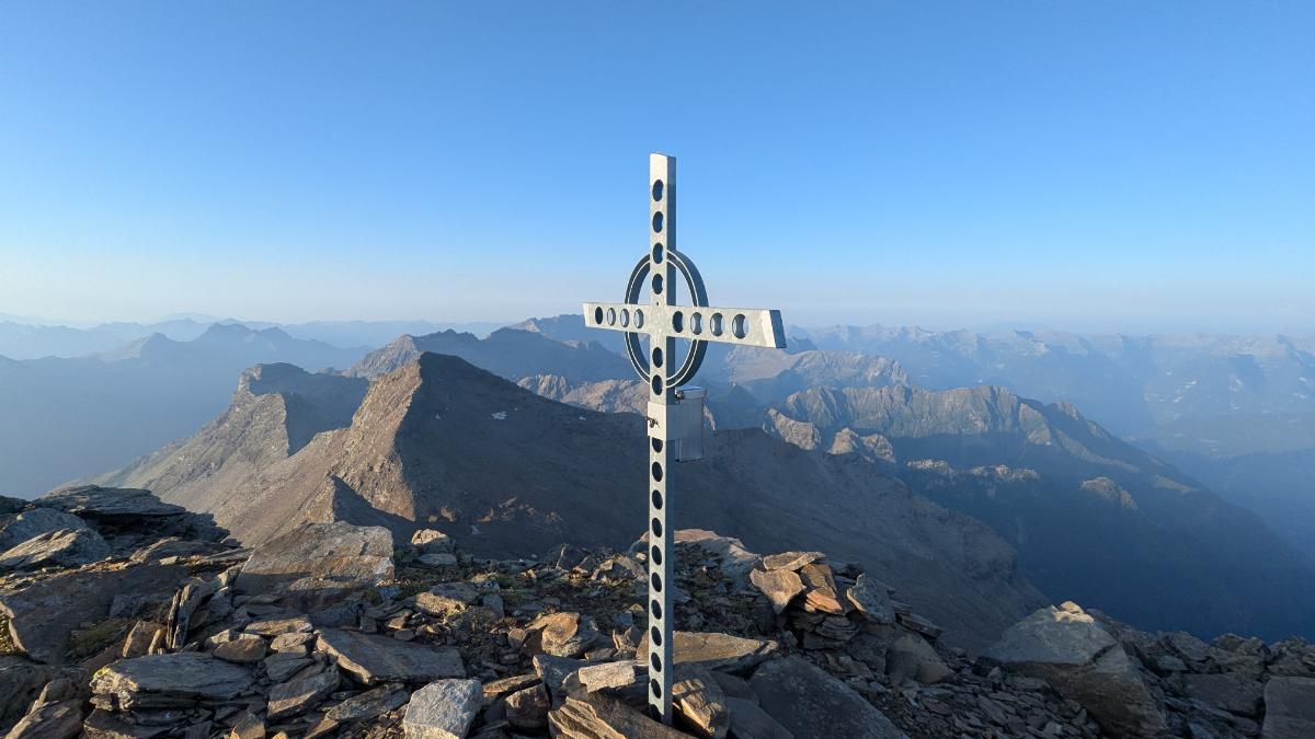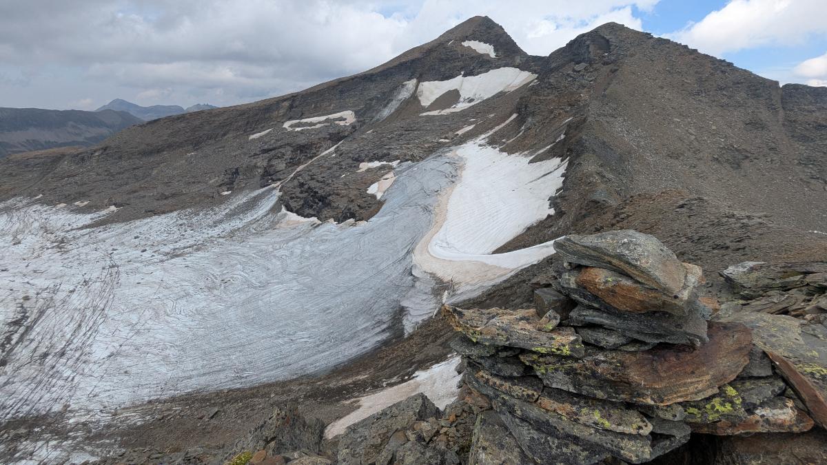 | 🥰 Top | Una cavalcata così, con 7 cime da 3000 in ambiente austero e severo, non capita spesso. Ogni cosa di questa giornata è eccezionale. Bellissima anche la conca glaciale, da poco lasciata libera dai ghiacci, a est del Puntone dei Fraciòn. La tappa si contraddistingue anche per la presenza di ghiacciai – alcuni residuali – in ogni direzione, sotto ai nostri piedi. |